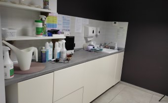 Składa się z: trzech gabinetów, poczekalni z recepcją, pomieszczenia socjalnego, toalety i małego pomieszczenia gospodarczego.