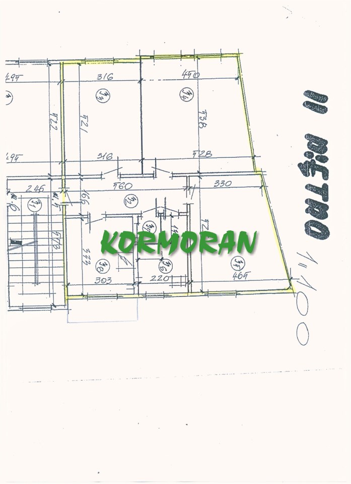 Mieszkanie składa się z trzech przestronnych, niezależnych pokoi (ok. 26, 21 i 16m2), odrębnej, dobrze doświetlonej, umeblowanej kuchni, dużej łazienki z WC, pomieszczenia gospodarczego (z przyłączem i miejscem na pralkę - może być zamienione na dodatkową toaletę) oraz przedpokoju.