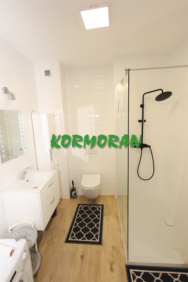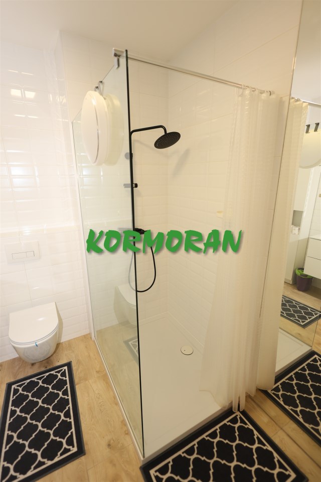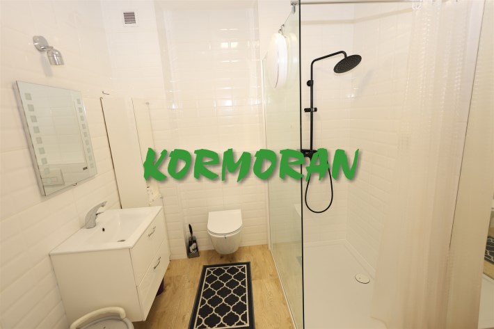 Łazienka: Nowoczesna, połączona z WC, wykończona materiałami wysokiej klasy.
