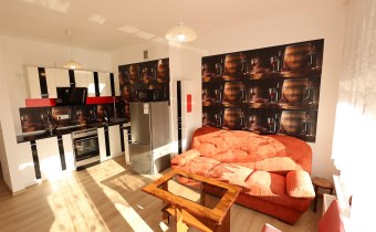 Salonu z aneksem kuchennym: Jasny i ustawny, z wyjściem na balkon.