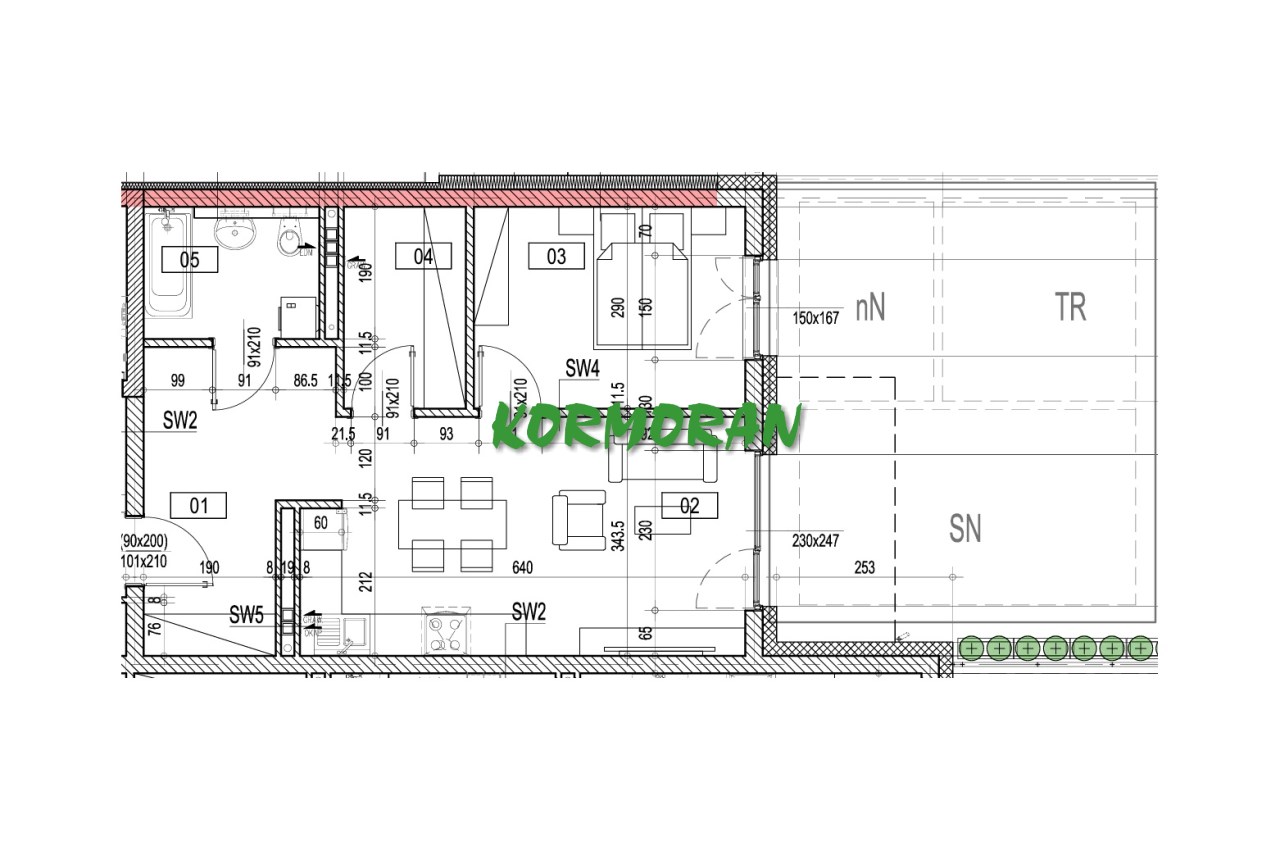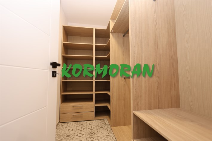 Przestronny salon z aneksem kuchennym: Idealne miejsce do relaksu i spędzania czasu z bliskimi. Aneks kuchenny jest w pełni wyposażony w nowoczesne meble na wymiar oraz wysokiej klasy sprzęt AGD (płyta indukcyjna, piekarnik, lodówka, zmywarka).