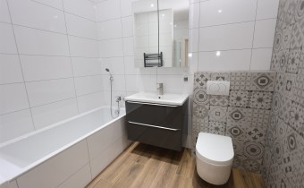 Łazienkę z wanną: Nowocześnie urządzona, zapewniająca komfort użytkowania.